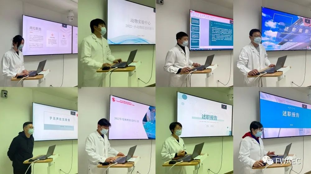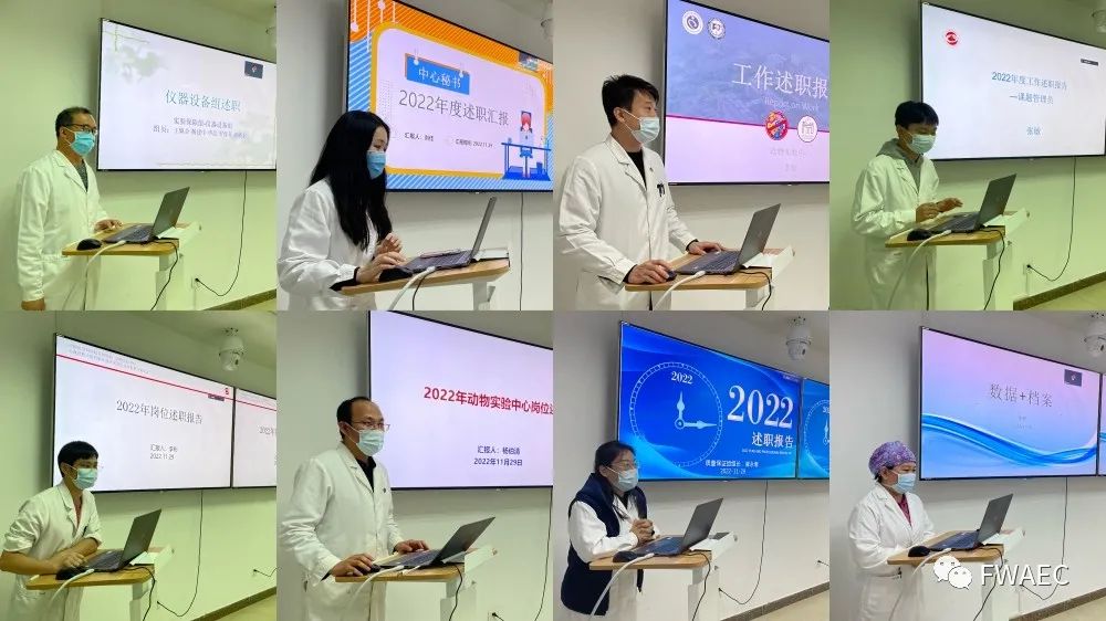 为总结2022年度岗位工作职责履行情况,进一步加强管理岗位及科研人员的队伍建设,强化管理意识、责任意识,职能担当,开拓来年工作思路,优化团队建设,2022年11月29日,动物实验中心以线上线下结合的方式举行了管理岗位和科研岗位的述职汇报演讲会。由中心主任、护士长及职能岗位负责人听取并评价汇报内容。